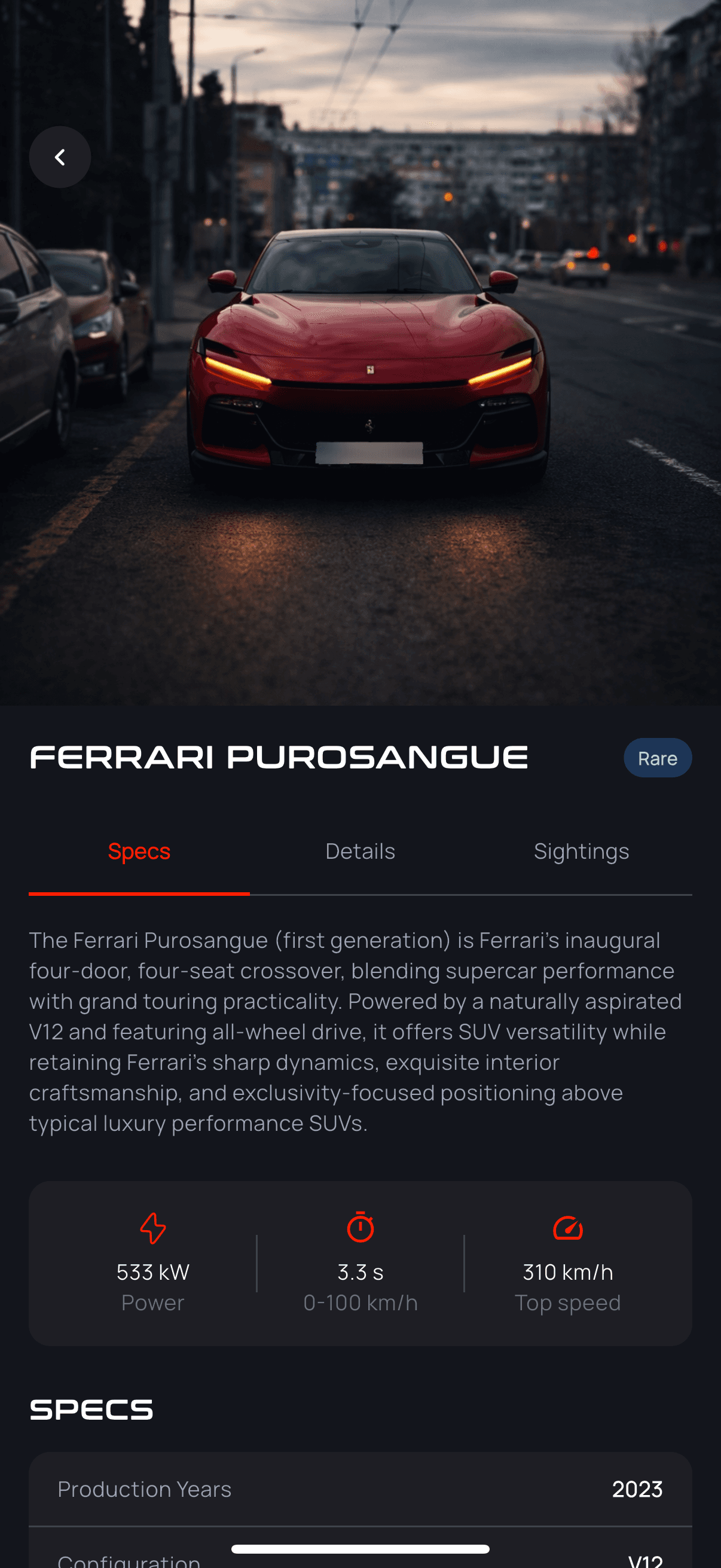 A data-rich dashboard that breaks down your collection by brand, trim, and rarity, with performance specs, production numbers, provenance to help you know and grow your collection.